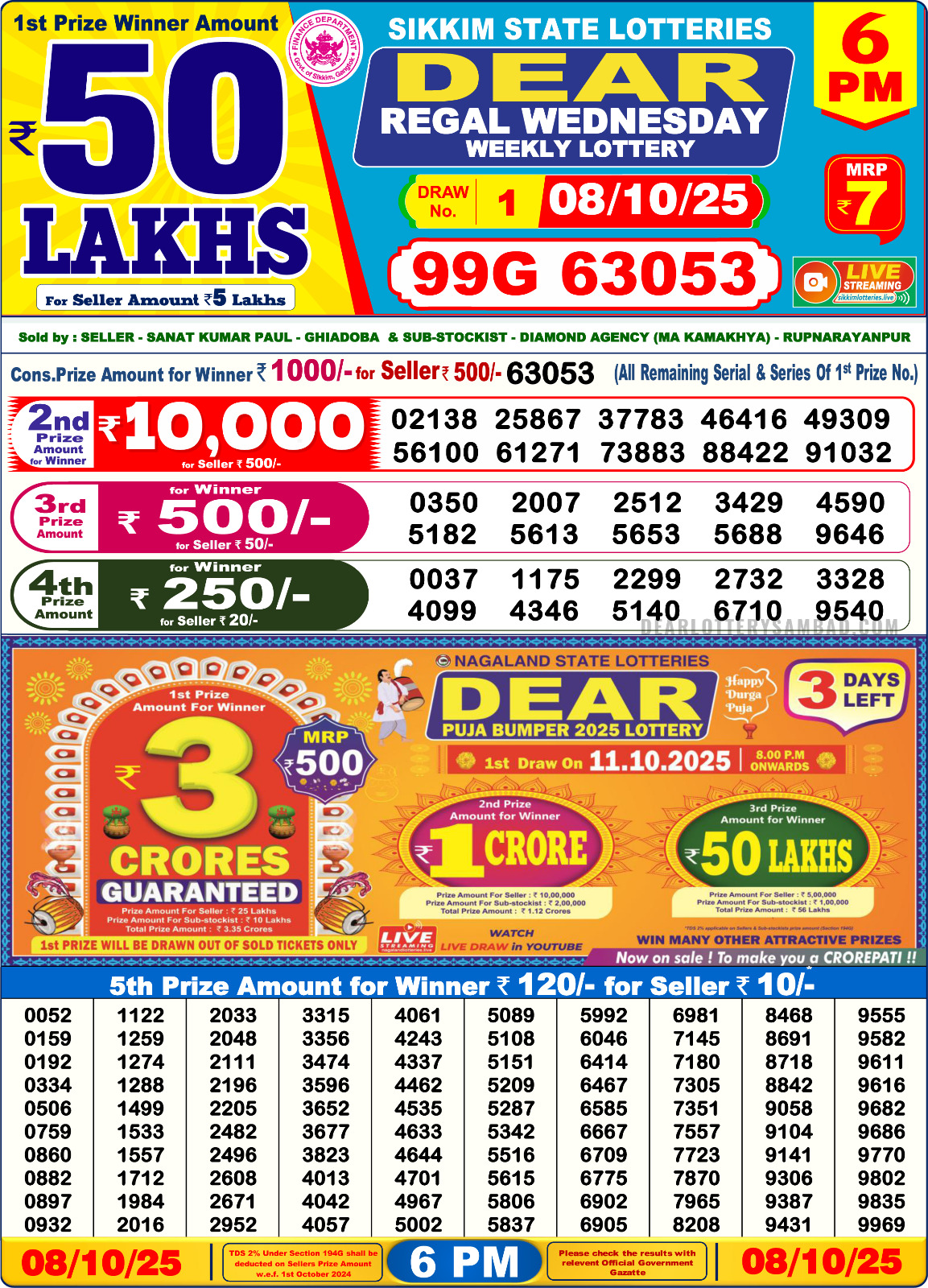 Punjab State Dear 50 6pm Weekly Lottery 08 October 2025