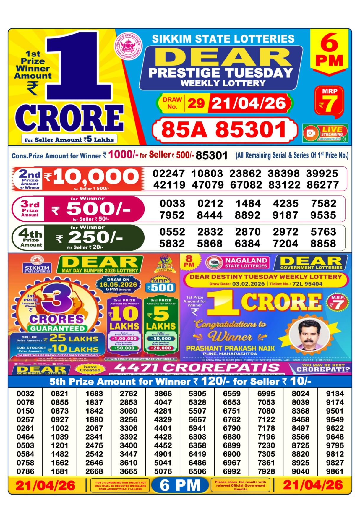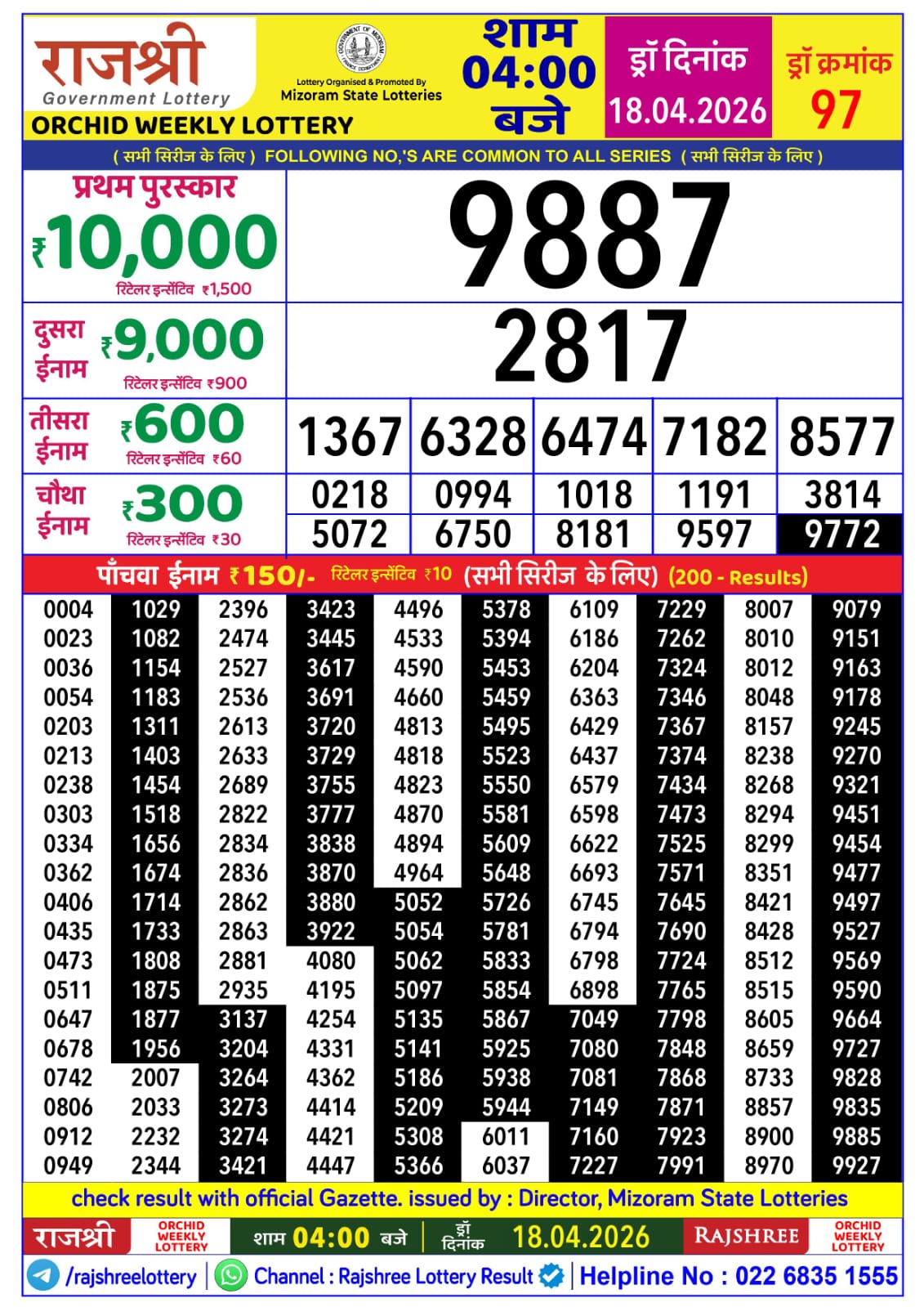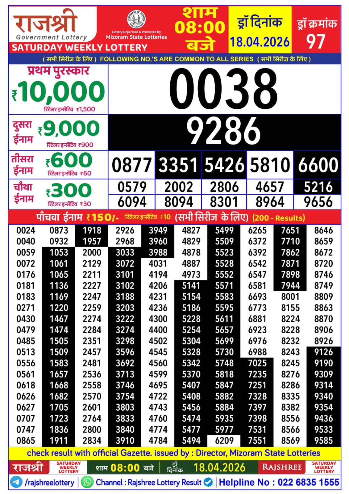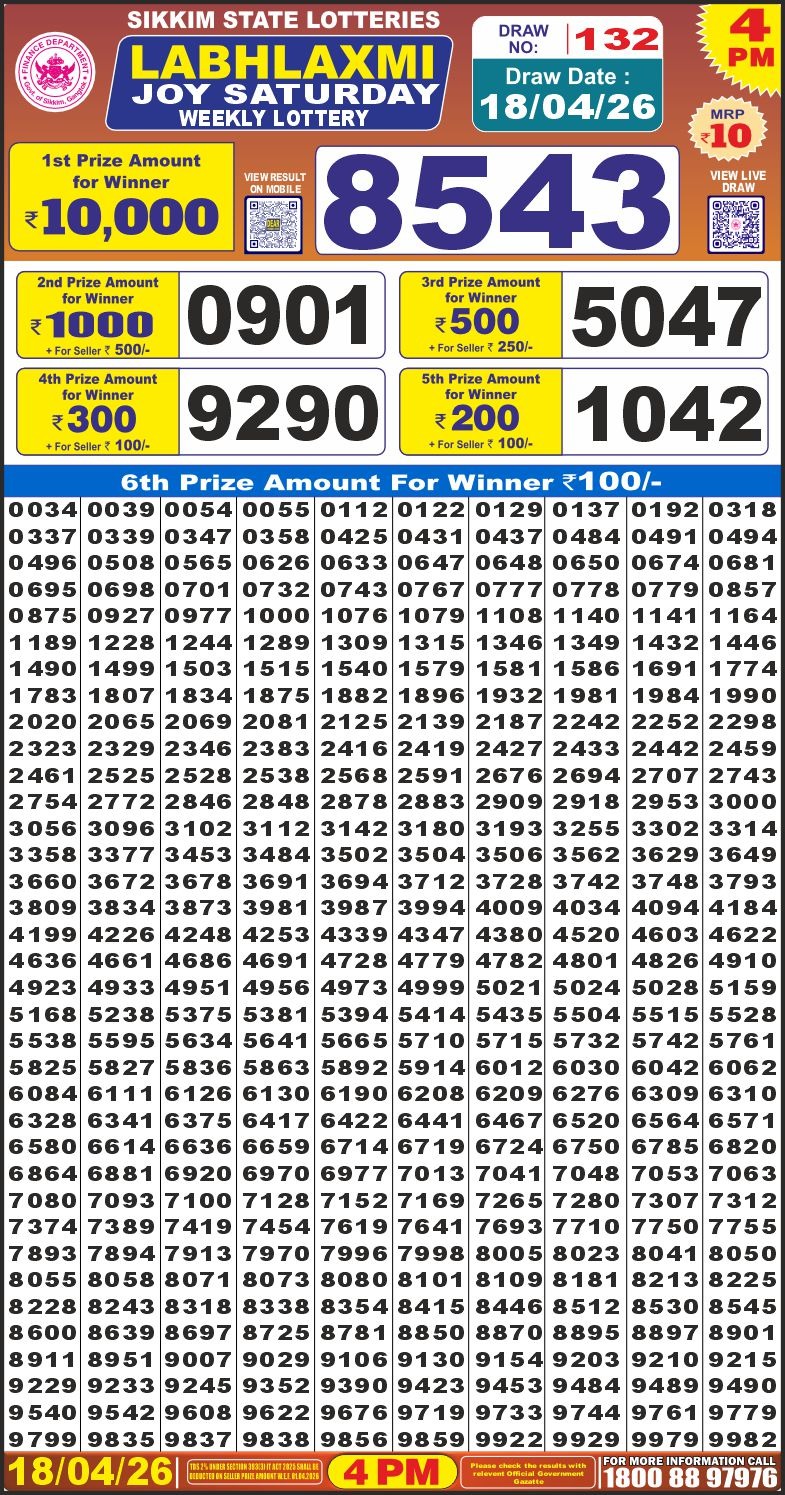 Punjab State Baisakhi Bumper 2026 Result 18 April The much awaited Punjab State Baisakhi Bumper 2026 Result is set to be announced today, 18 April…
