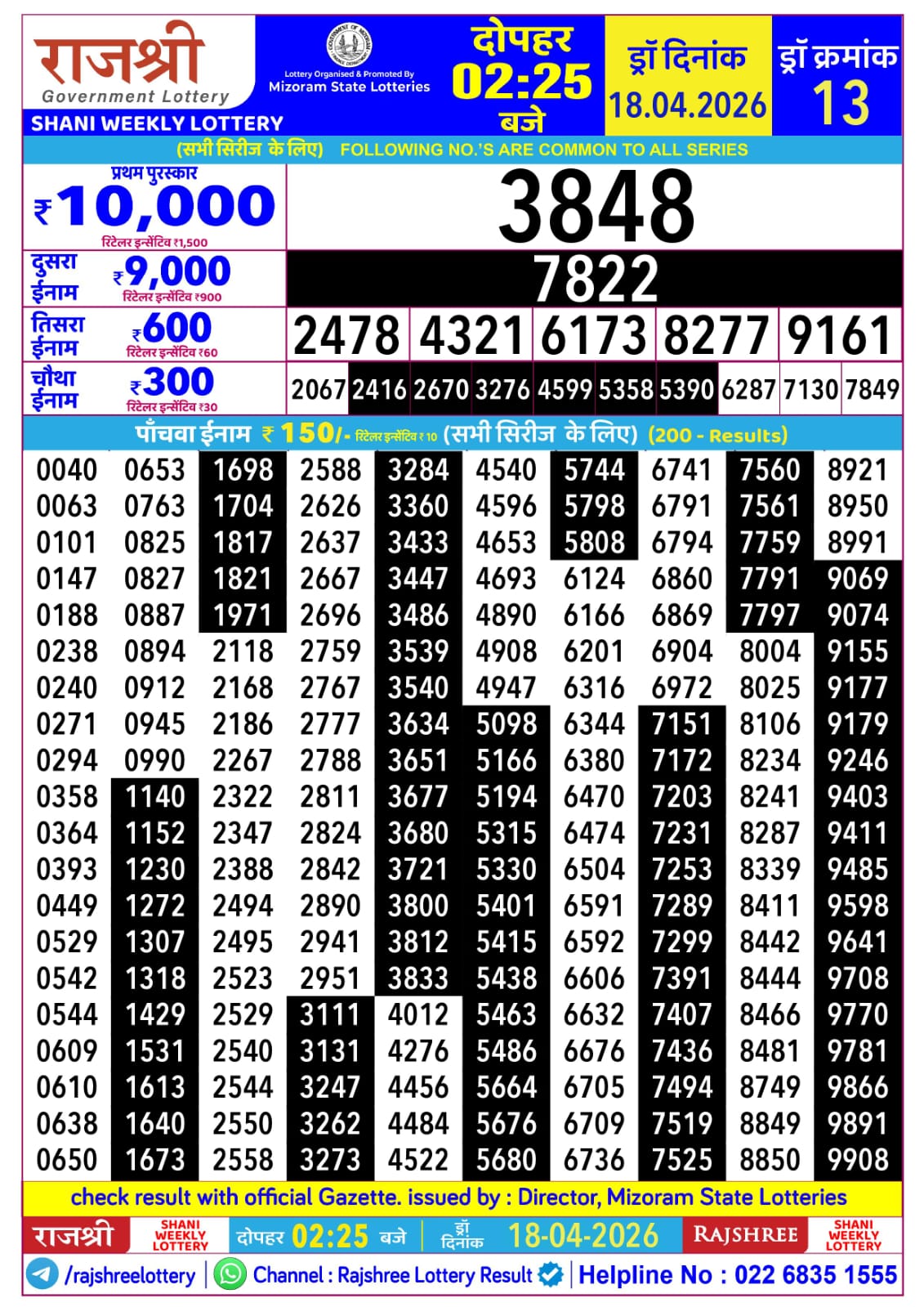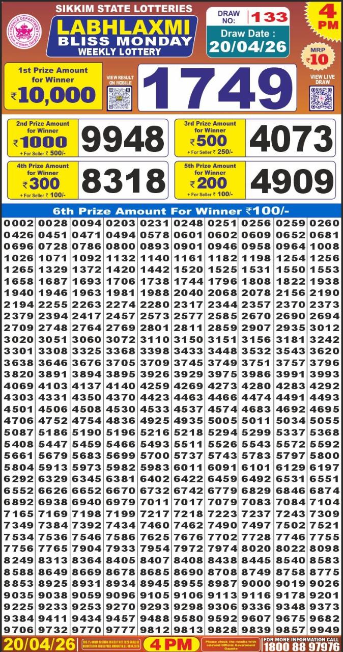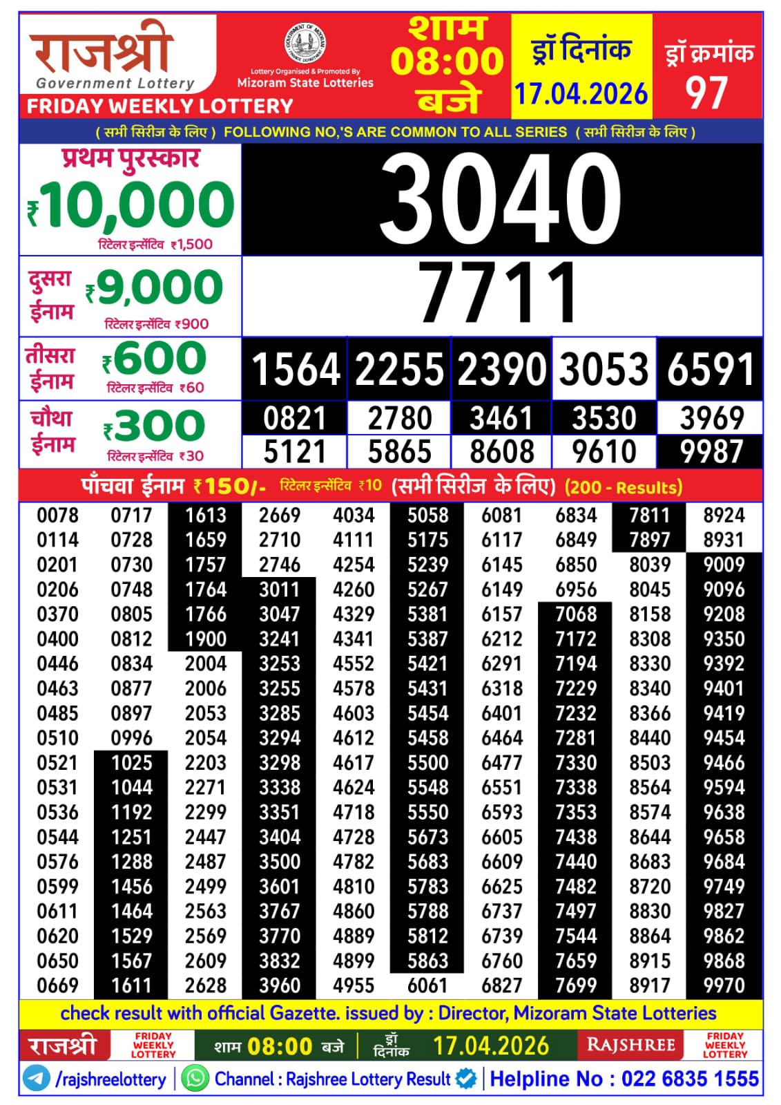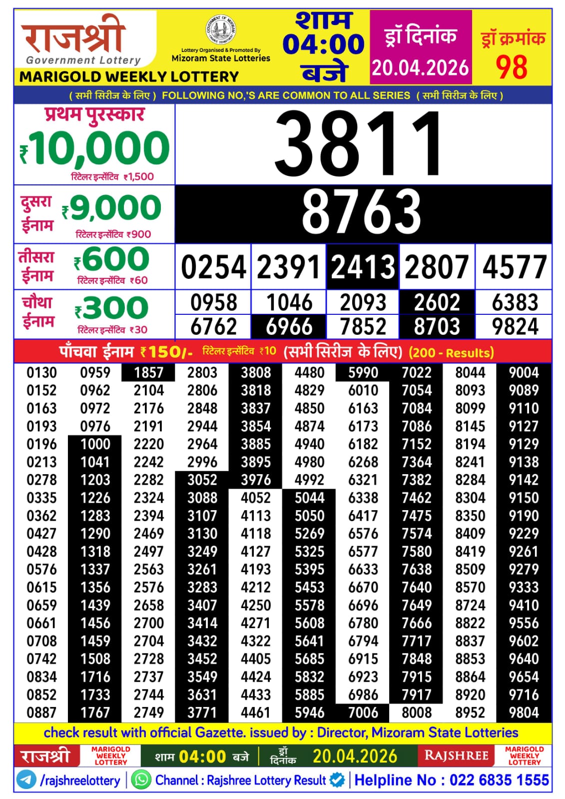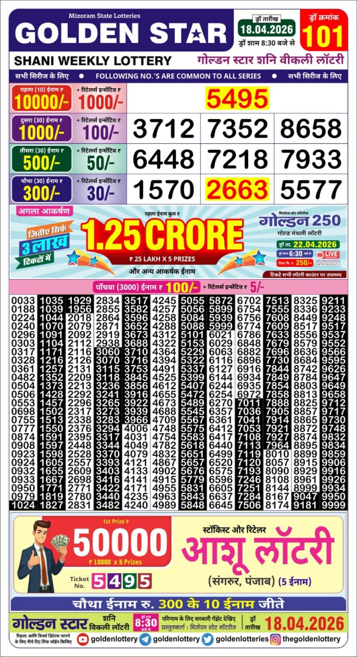 Punjab State Baisakhi Bumper 2026 Result 18 April The much awaited Punjab State Baisakhi Bumper 2026 Result is set to be announced today, 18 April…