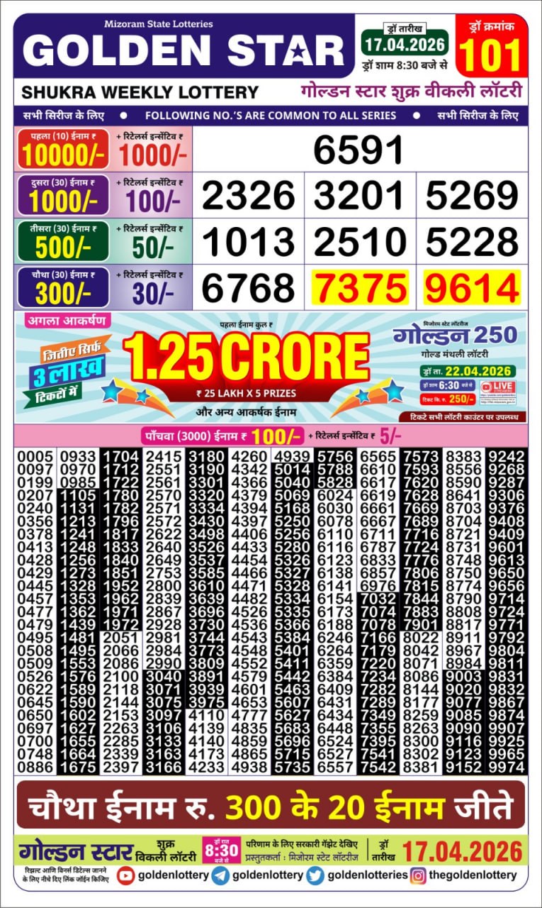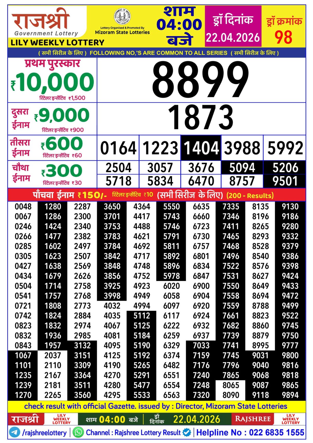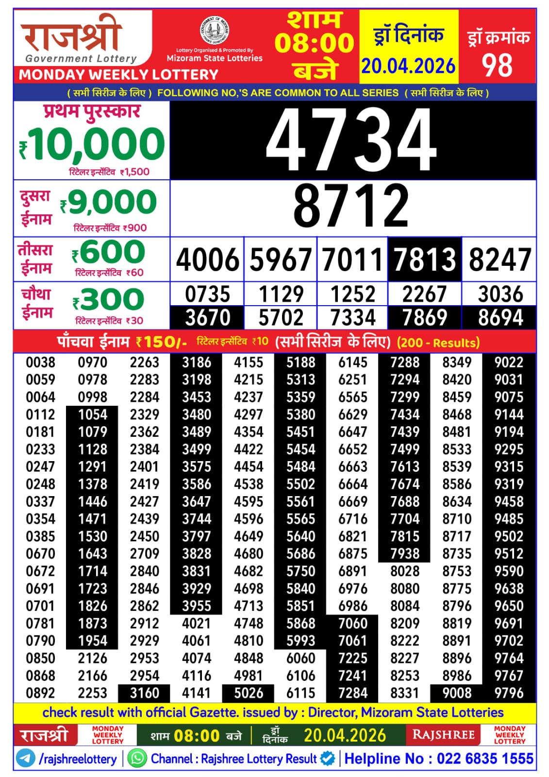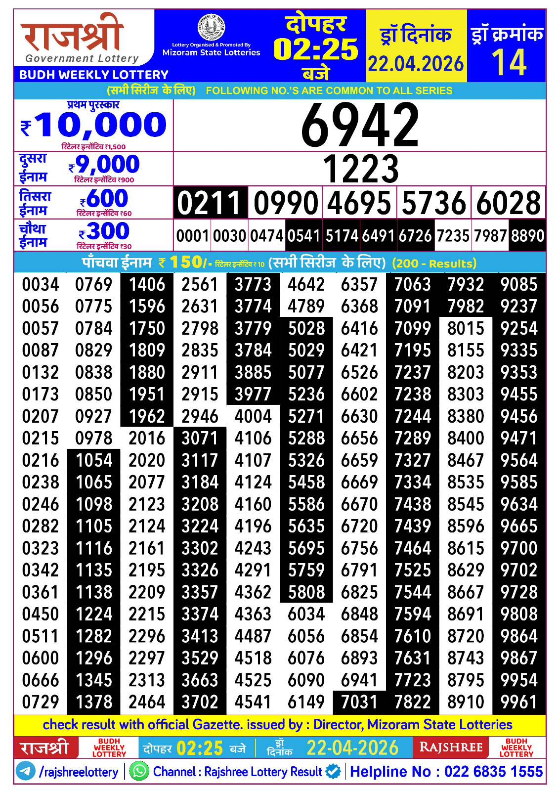 Punjab State Baisakhi Bumper 2026 Result 18 April The much awaited Punjab State Baisakhi Bumper 2026 Result is set to be announced today, 18 April…