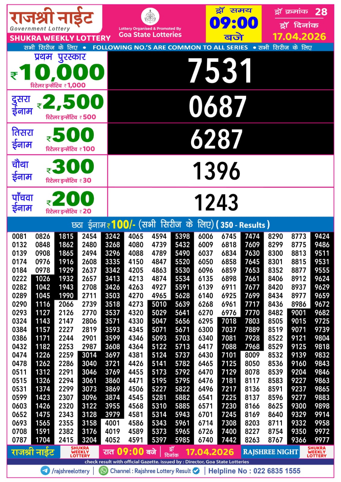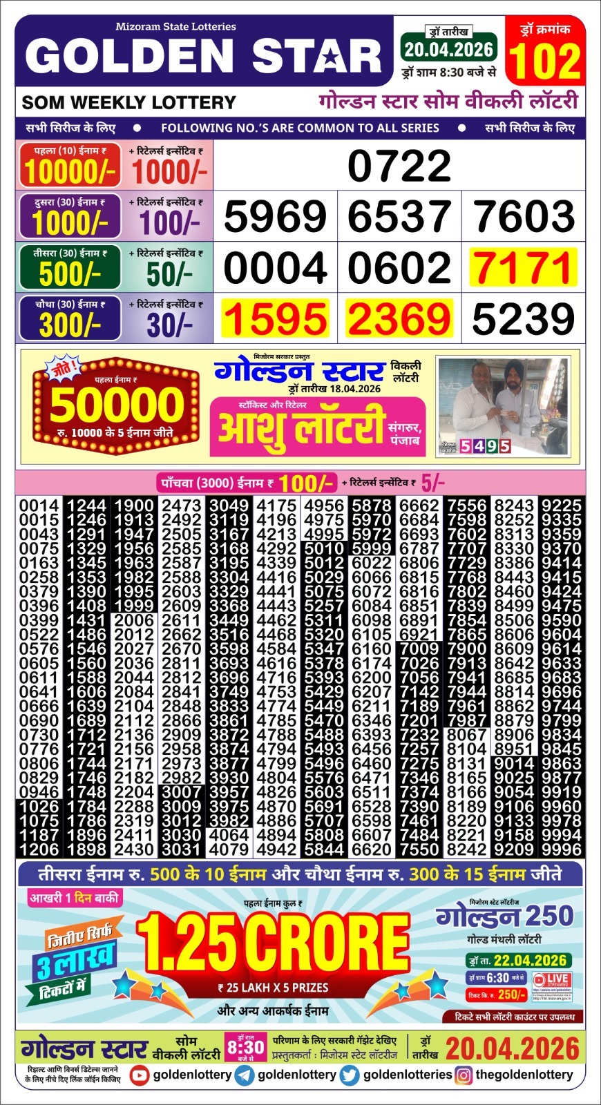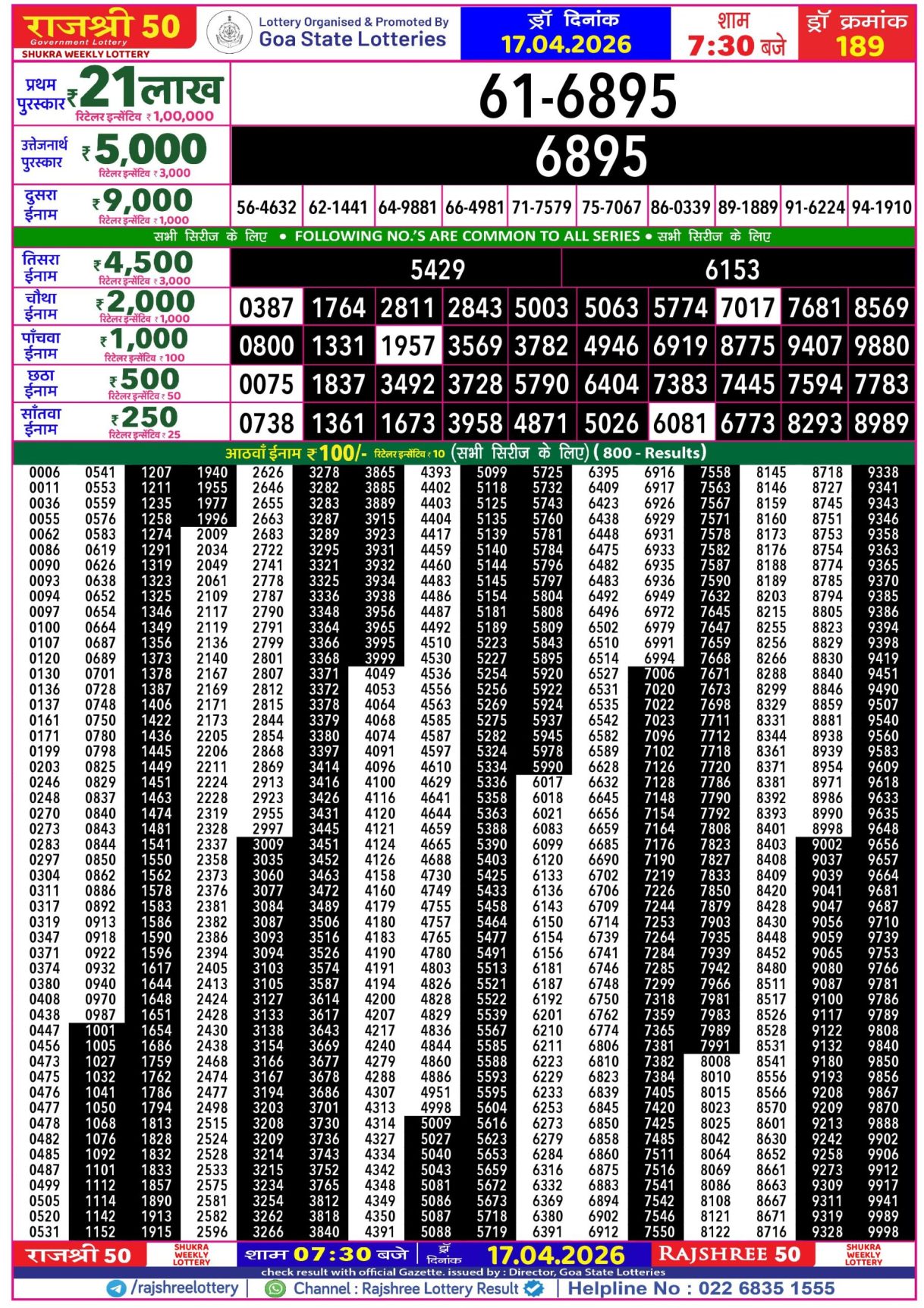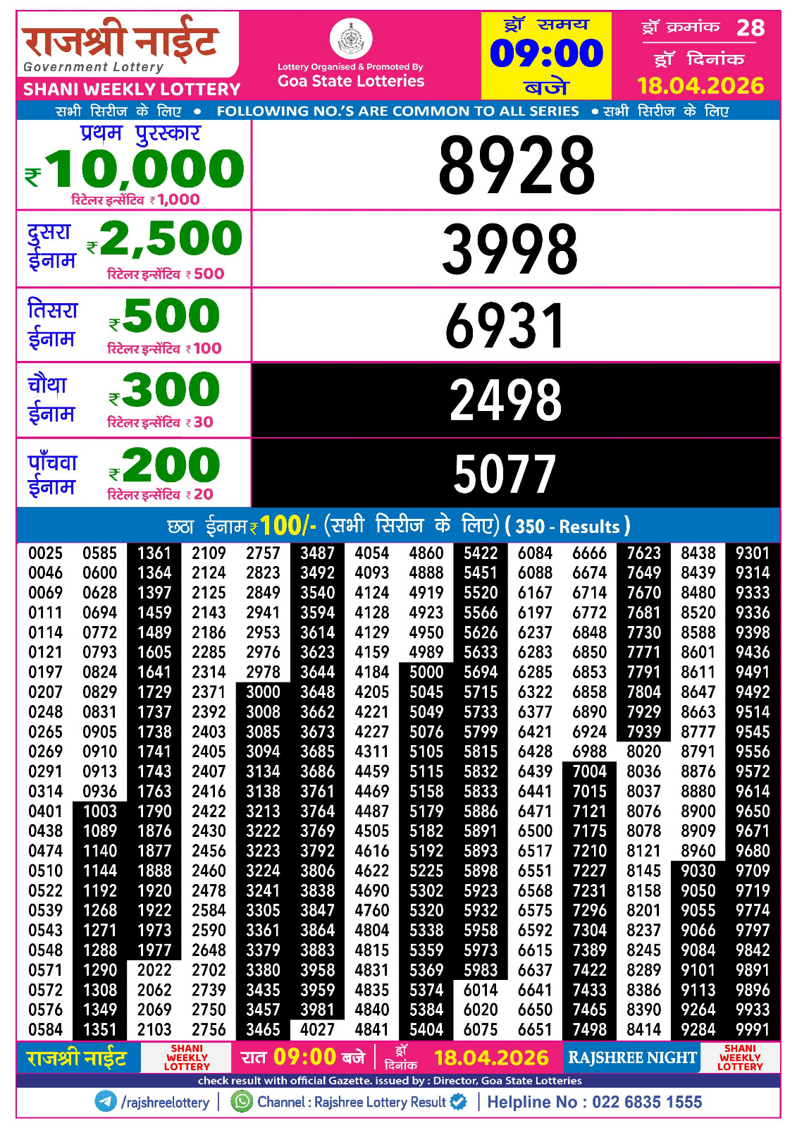 Punjab State Baisakhi Bumper 2026 Result 18 April The much awaited Punjab State Baisakhi Bumper 2026 Result is set to be announced today, 18 April…