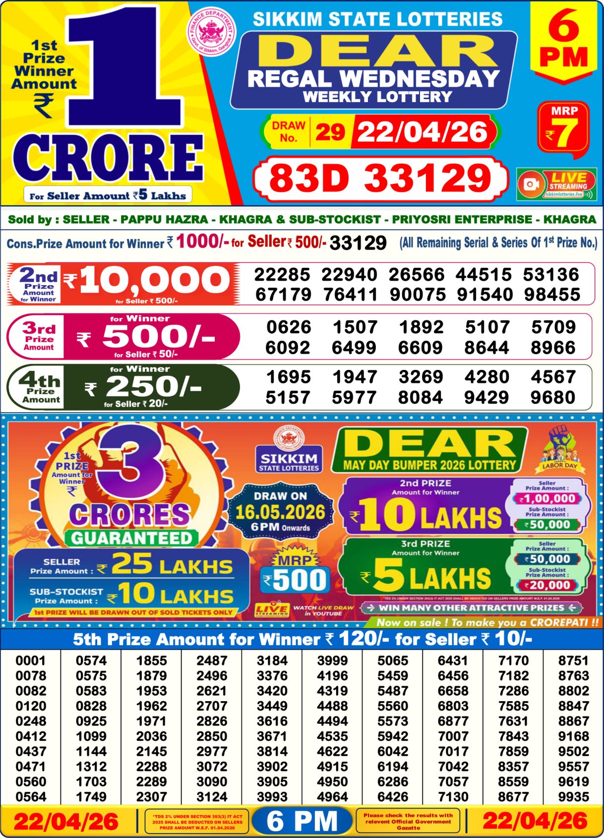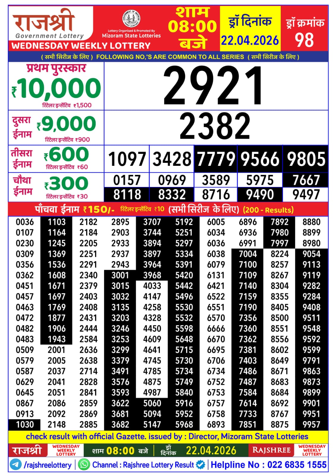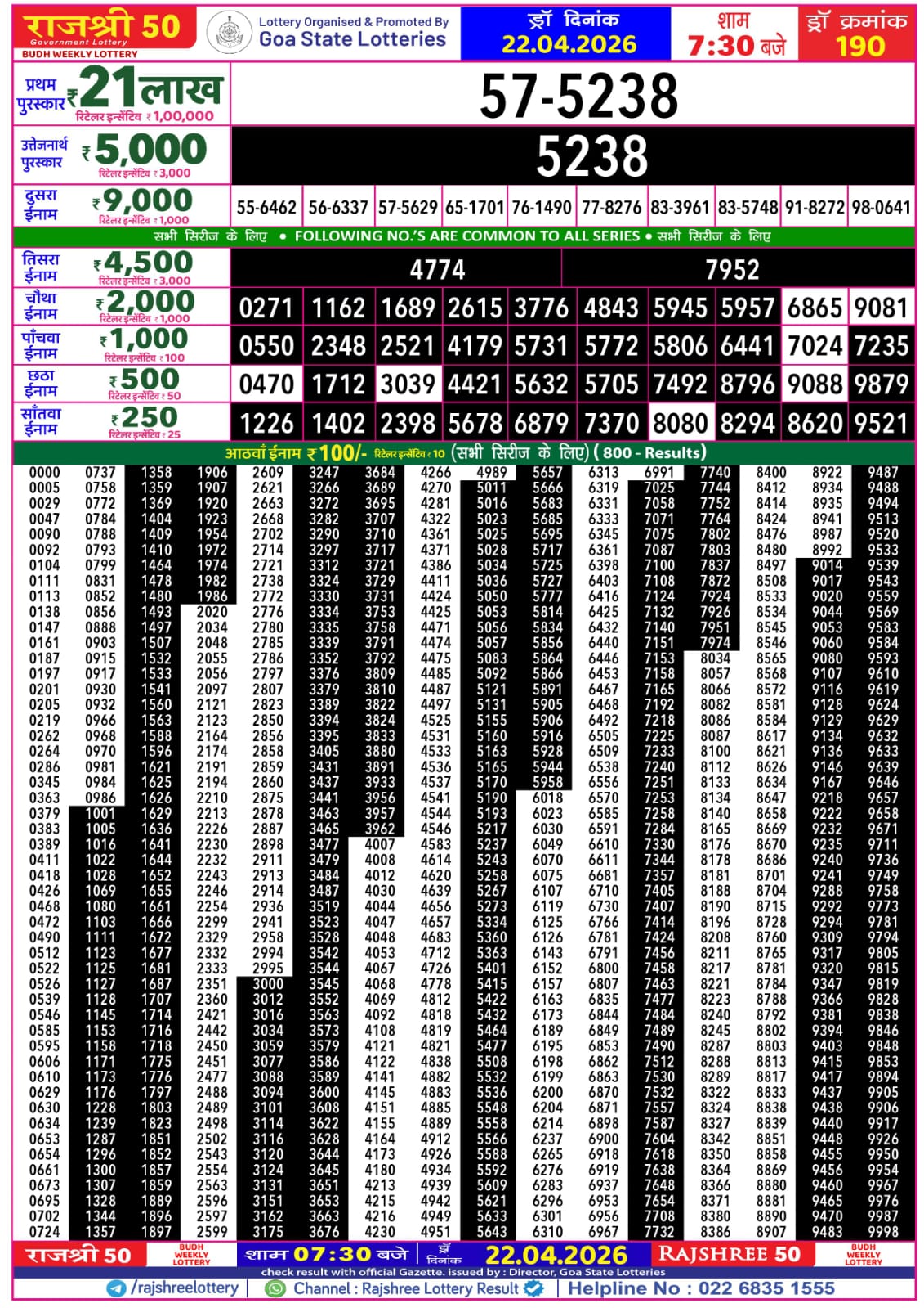 Live Update Rajshree 50 Monthly Lottery Result 6:30PM 23 April 2026: Live Winning Numbers Exclusive coverage provided by www.lotteryresult.co.in — India’s Most Trusted Lottery Portal…