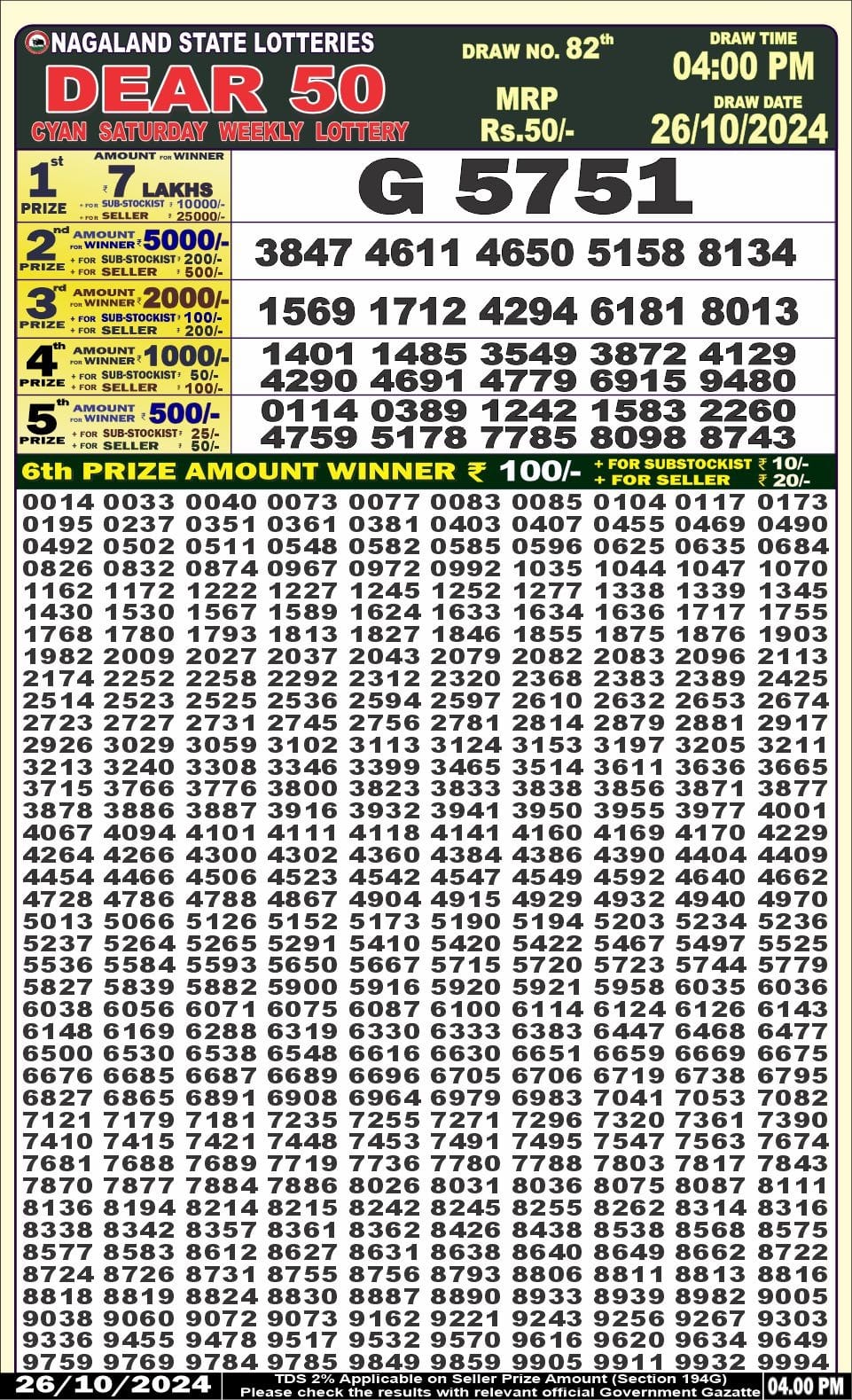 Dear 50 cyan weekly 4pm lottery result 26.10.24