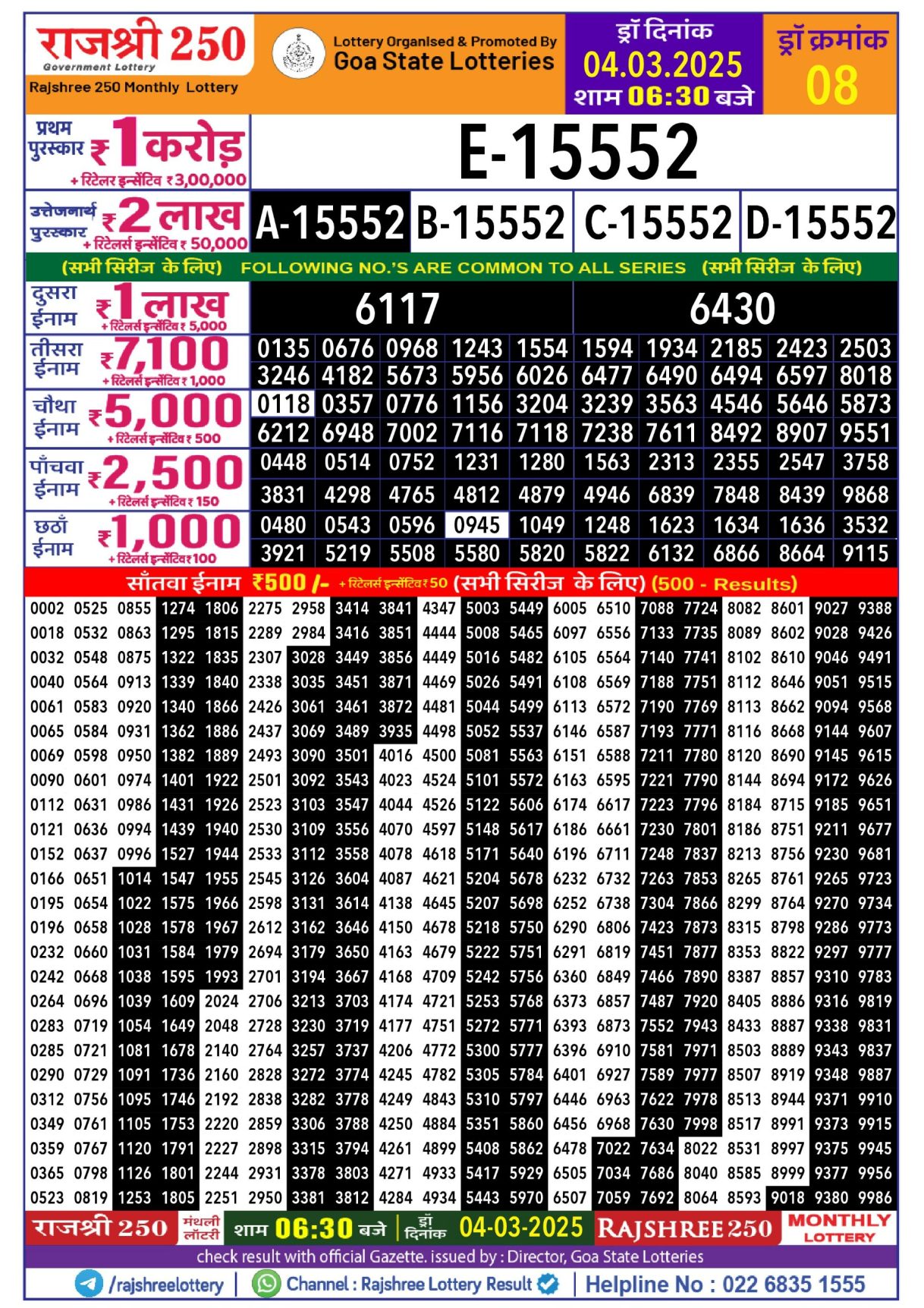 Rajshree 100 monthly lottery result 6 March 2025