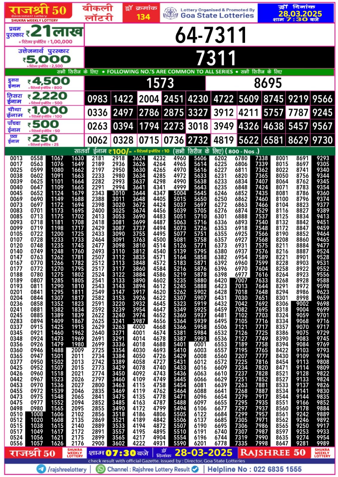 Rajshree 50 Lottery 7:30PM Daily Result 28 March 2025