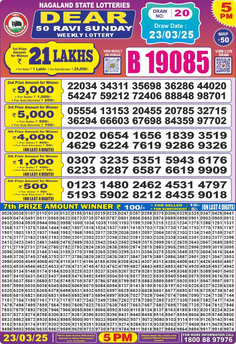 Dear 50 ravi weekly 5pm lottery result 23 March 2025