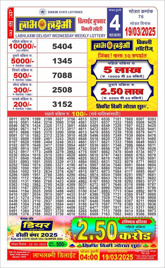 LabhLaxmi Delight Lottery 4PM Daily Result 19 March 2025