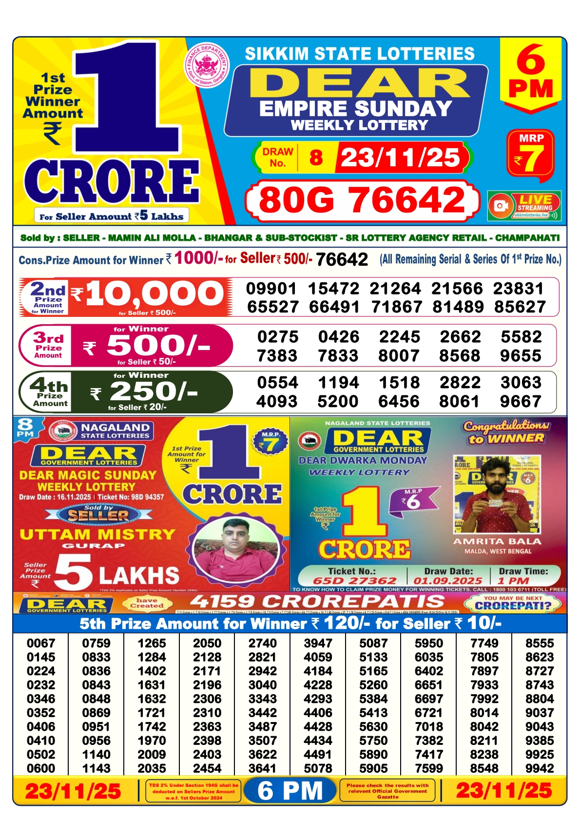 Nagaland Dear Special Bumper Lottery Result 22 November 2025