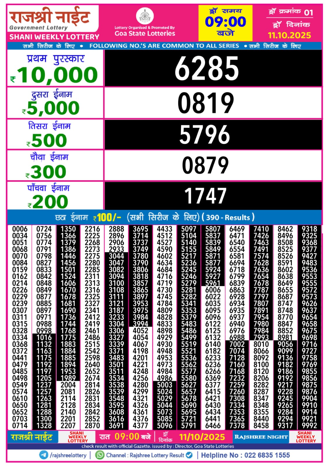 Dear Puja Bumper Lottery Result 11 October 2025