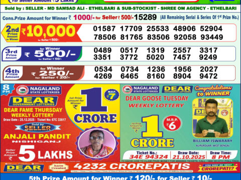 Dear Clover Lottery 8pm Daily Result 10 November 2025 Recent Results 0 5 Dear Horizon Lottery 8pm Daily Result 26 December 2025 0 6 Dear Crown Lottery 6pm Result 26 December 2025 0 5 Labhlaxmi Glow Lottery 4pm Daily Result 26 December 2025 0 7 Dear Victory Lottery 1pm Daily Result 26 December 2025