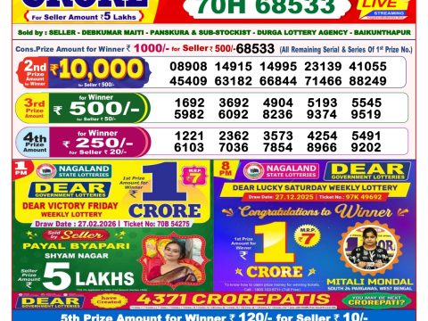Dear Dream Lottery 8pm Daily Result 24 December 2025 Recent Results 0 4 Dear Elite Lottery 6pm Result 28 February 2026 0 2 Labhlaxmi Joy Lottery 4pm Daily Result 28 February 2026 0 3 Dear Vision Lottery 1pm Daily Result 28 February 2026 0 19 Dear Horizon Lottery 8pm Daily Result 27 February 2026