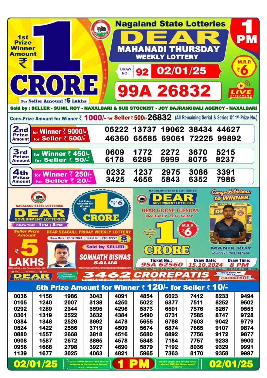 Dear mahanadi Lottery 1PM Daily Result 2 jan 2025 Recent Results 0 1 Dear Magic Lottery Result 8pm 14 December 2025 0 2 Dear Empire Lottery 6pm Result 14 December 2025 0 1 Labhlaxmi Power Lottery 4pm Daily Result 14 December 2025 0 2 Dear Wish Lottery 1pm Daily Result 14 December 2025