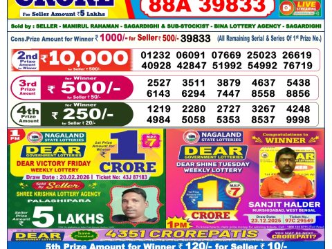 Dear Wish Lottery 1pm Daily Result 22 February 2026 Recent Results 0 3 Dear Magic Lottery Result 8pm 22 February 2026 0 2 Dear Empire Lottery 6pm Result 22 February 2026 0 2 Labhlaxmi Power Lottery 4pm Daily Result 22 February 2026 0 26 Dear Elite Lottery 6pm Result 21 February 2026