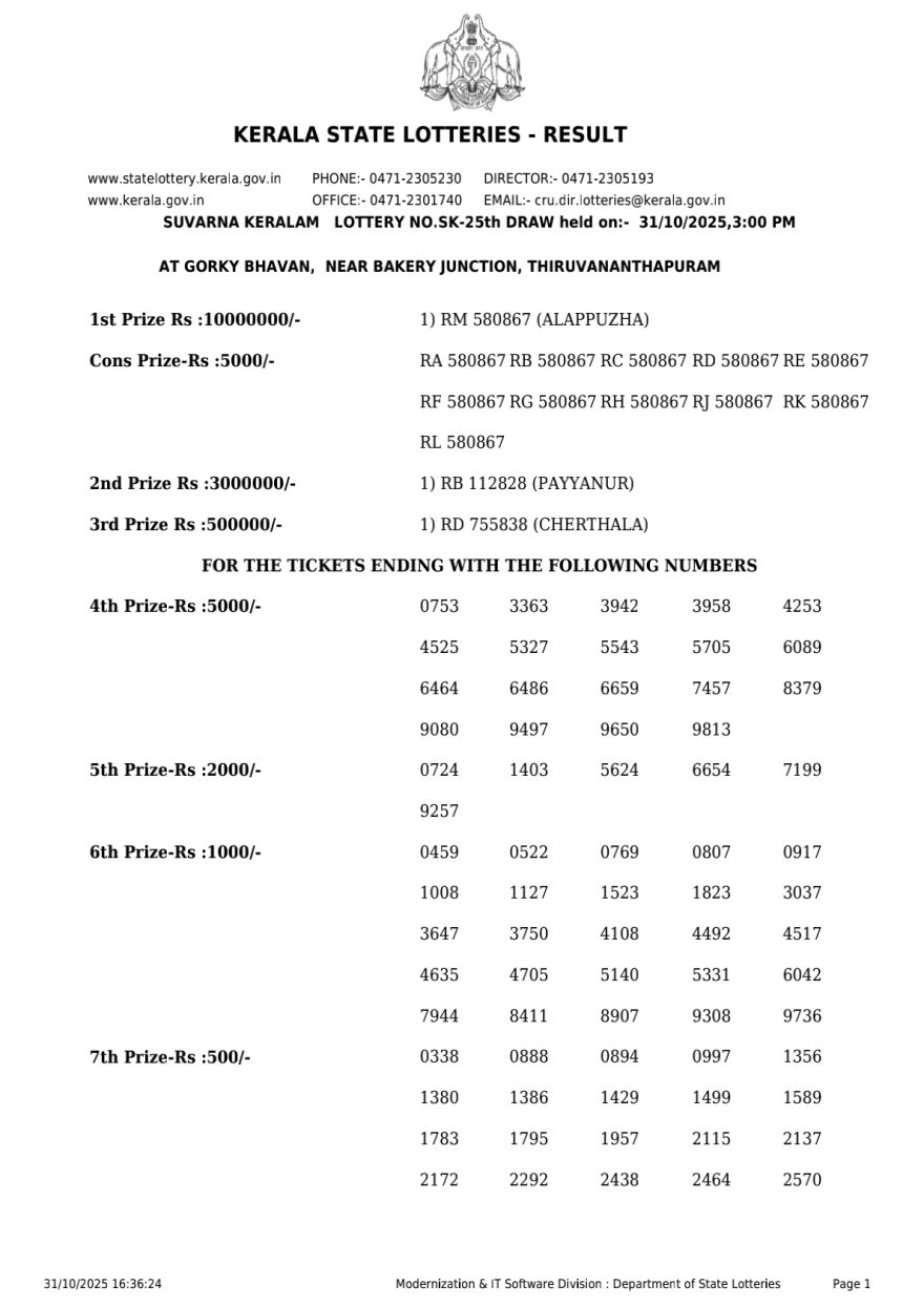 Kerala Lottery Result Chart 2025 Today SK 25 Live Recent Results 0 14 Kerala Lottery Result Chart 2025 Today KN 595 Live 0 24 Kerala Lottery Result Chart 2025 Today DL 24 Live 0 29 Kerala Lottery Result Chart 2025 Today SS 491 Live 0 40 Kerala Lottery Result Chart 2025 Today BT 26 Live