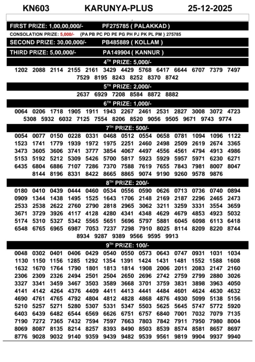KN 603 Lottery Result 25 December 2025 Kerala State Recent Results 0 11 DL 32 Lottery Result 24 December 2025 Kerala State 0 20 SS 499 Lottery Result 23 December 2025 Kerala State 0 27 BT 34 Lottery Result 22 December 2025 Kerala State 0 28 SM 34 Lottery Result 21 December 2025 Kerala State