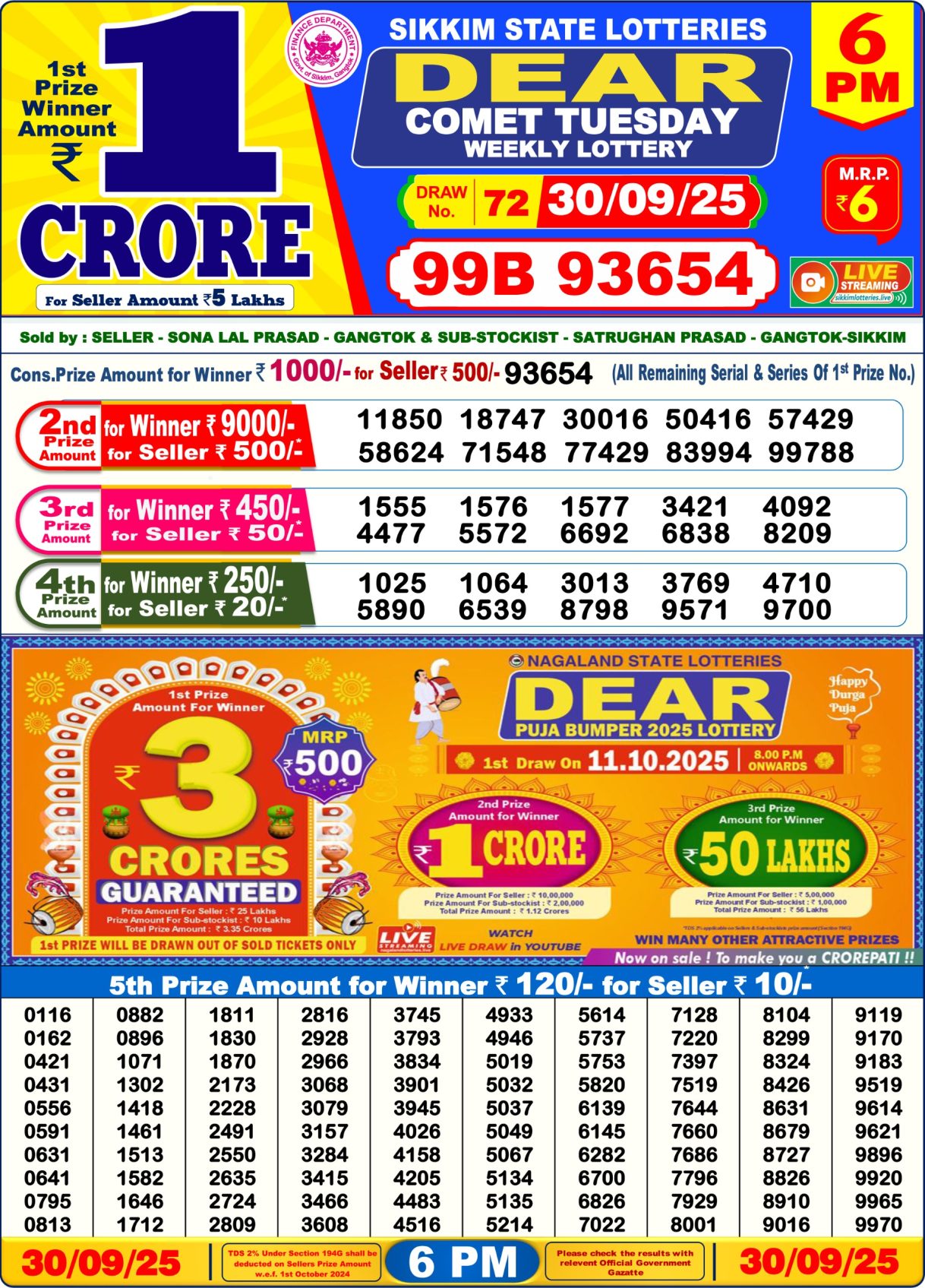 Punjab State Dear 50 6pm Weekly Lottery 30 September 2025