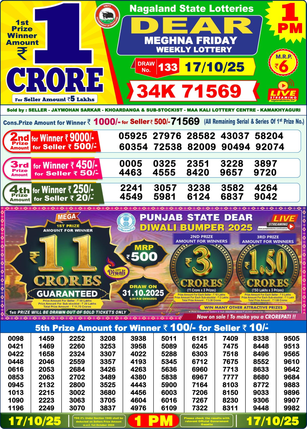 Punjab State Dear 50 6pm Weekly Lottery 17 October 2025
