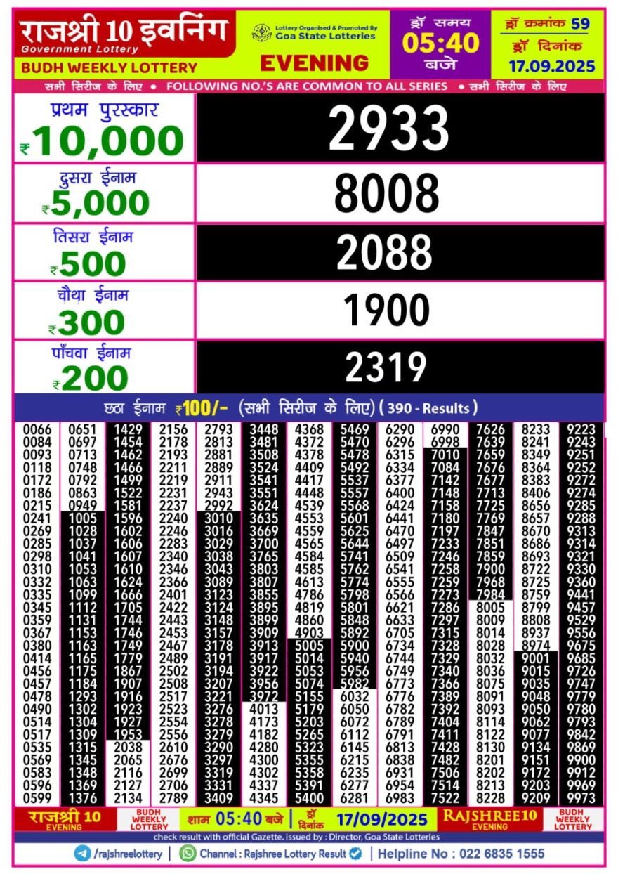 Rajshree 10 Evening Weekly 5:40 pm Lottery Result 17 September 2025 Recent Results 0 13 Rajshree 50 Lottery 7:30pm Daily Result 5 November 2025 0 14 Rajshree Lottery 8pm Daily Result 5 November 2025 0 15 Rajshree 10 Evening Weekly 5:40 pm Lottery Result 5 November 2025 0 14 Rajshree Lily Lottery 4pm Daily Result 5 November 2025