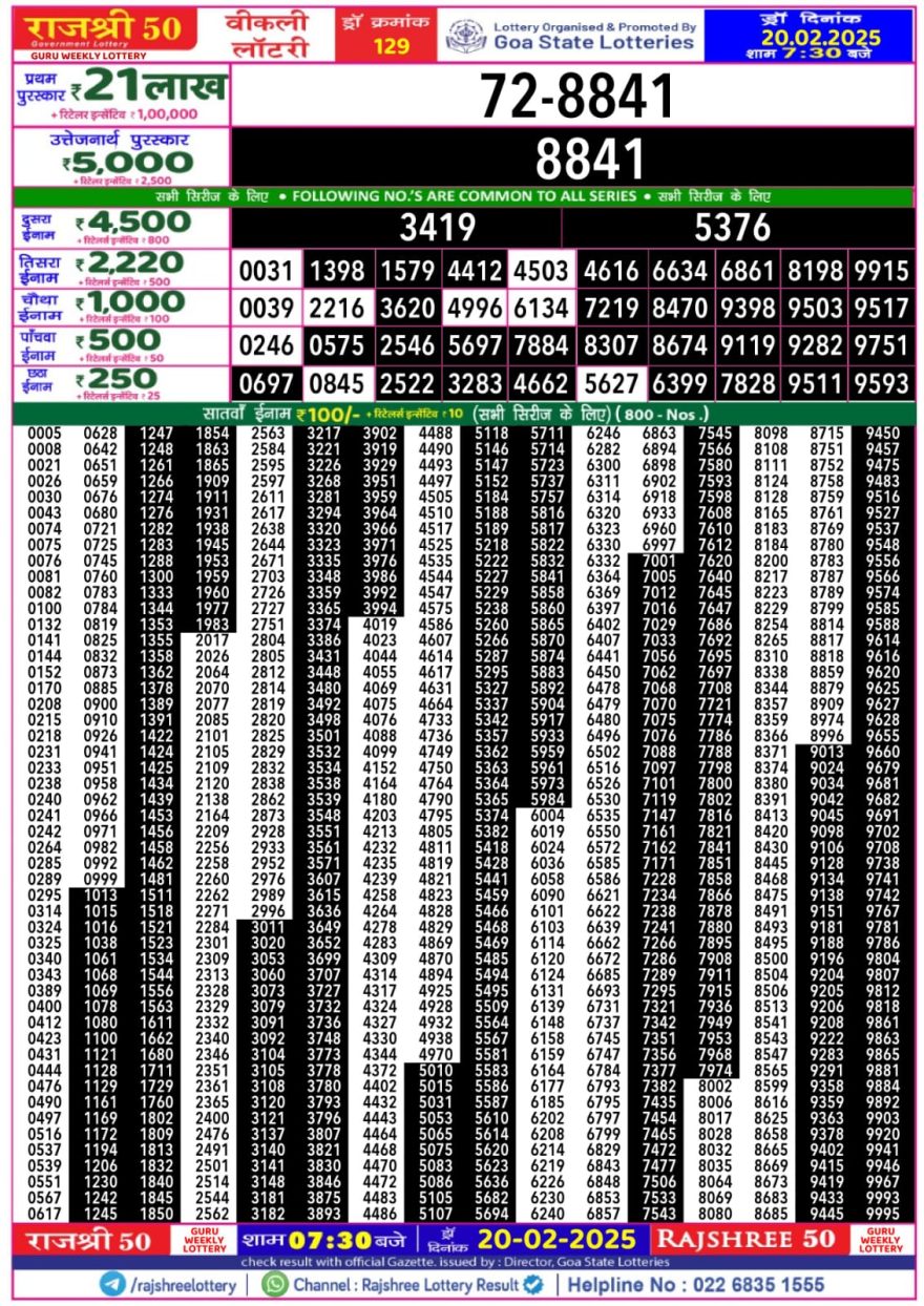 Rajshree 50 Lottery 7:30PM Daily Result 20 Feb 2025 Recent Results 0 1 Rajshree Lottery 8pm Daily Result 14 December 2025 0 1 Rajshree 50 Lottery 7:30pm Daily Result 14 December 2025 0 2 Rajshree 10 Evening Weekly 5:40 pm Lottery Result 14 December 2025 0 2 Rajshree Ravi Lottery 1pm Daily Result 14 December 2025