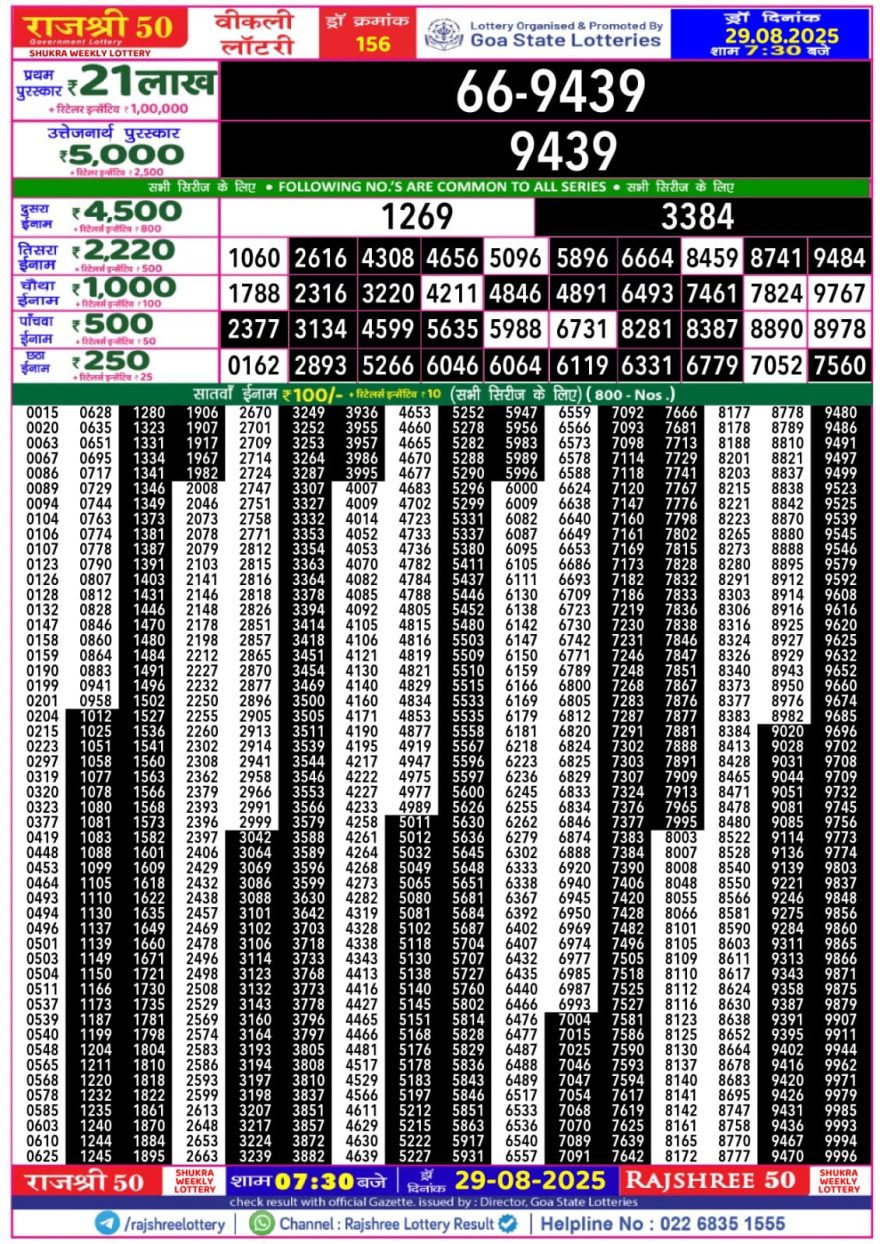 Rajshree 50 Lottery 7:30pm Daily Result 29 August 2025 Recent Results 0 1 Rajshree 30 Lottery 8:30pm Daily Result 31 October 2025 0 1 Rajshree 50 Lottery 7:30pm Daily Result 31 October 2025 0 1 Rajshree Lottery 8pm Daily Result 31 October 2025 0 1 Rajshree 10 Evening Weekly 5:40 pm Lottery Result 31 October 2025