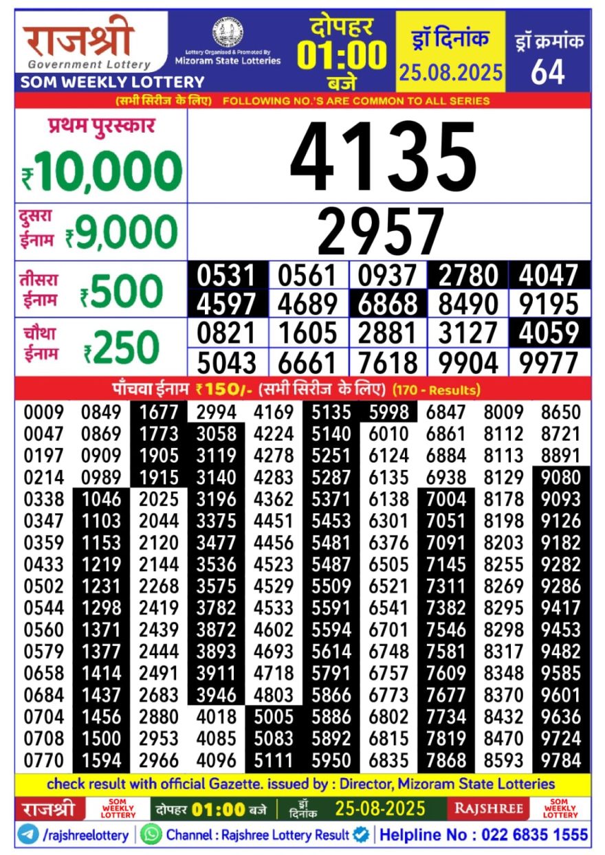 Rajshree Som Weekly Lottery 1pm Result 25 August 2025 Recent Results 0 2 Rajshree 30 Lottery 8:30pm Daily Result 14 October 2025 0 2 Rajshree 50 Lottery 7:30pm Daily Result 14 October 2025 0 2 Rajshree Lottery 8pm Daily Result 14 October 2025 0 2 Rajshree 10 Evening Weekly 5:40 pm Lottery Result 14 October 2025
